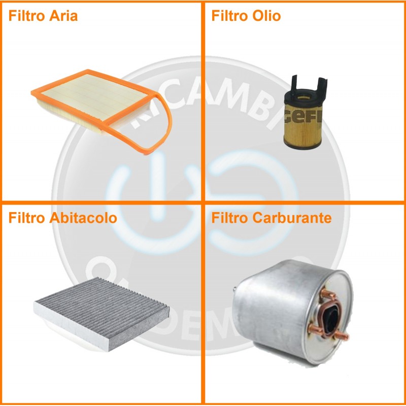 | Composizione | Filtro olio, Filtro abitacolo ai carboni attivi, Filtro aria, Filtro gasolio |