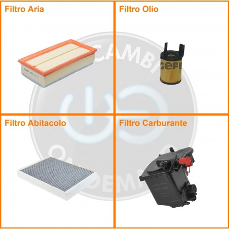 | Composizione | Filtro gasolio, Filtro olio, Filtro abitacolo ai carboni attivi, Filtro aria |