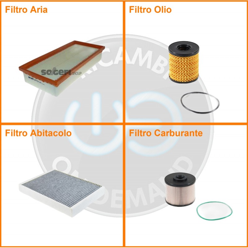 | Composizione | Filtro olio, Filtro abitacolo ai carboni attivi, Filtro aria, Filtro gasolio |