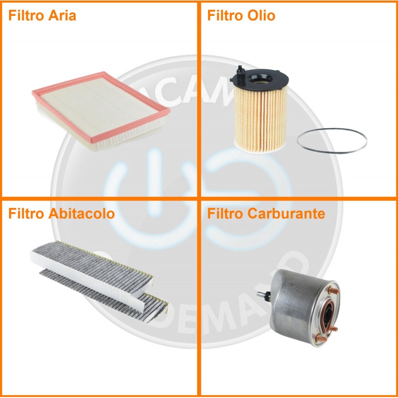| Composizione | Filtro gasolio, Filtro olio, Filtro abitacolo ai carboni attivi, Filtro aria |