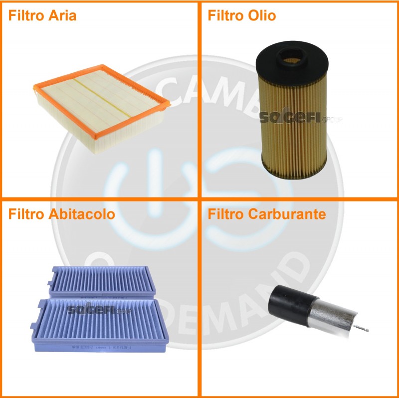 ComposizioneFiltro benzina, Filtro olio, Filtro abitacolo ai carboni attivi, Filtro aria