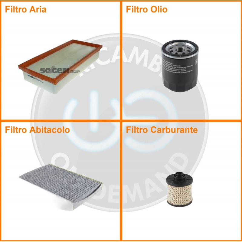 ComposizioneFiltro olio, Filtro abitacolo ai carboni attivi, Filtro aria, Filtro gasolio