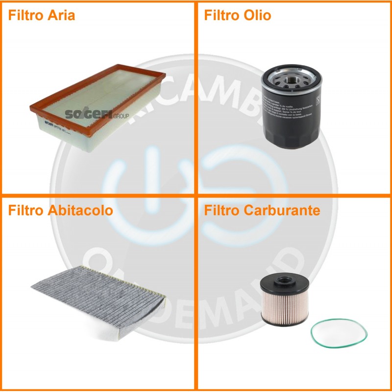 ComposizioneFiltro abitacolo ai carboni attivi, Filtro aria, Filtro gasolio, Filtro olio