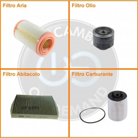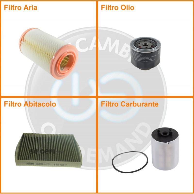 ComposizioneFiltro gasolio, Filtro olio, Filtro abitacolo ai carboni attivi, Filtro aria
