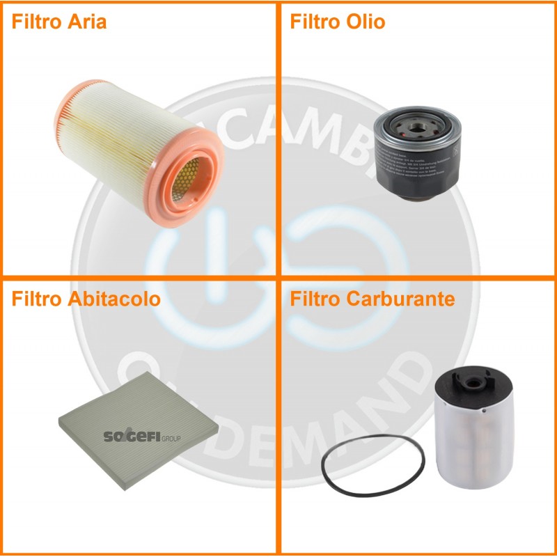 ComposizioneFiltro gasolio, Filtro olio, Filtro abitacolo, Filtro aria