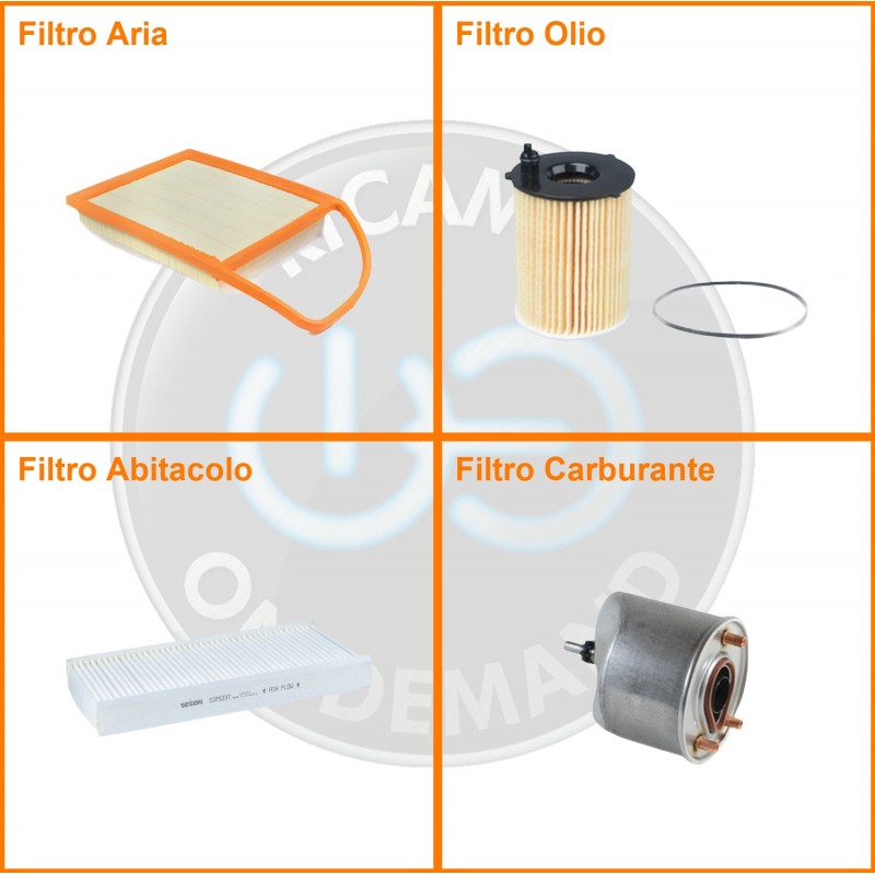ComposizioneFiltro gasolio, Filtro olio, Filtro abitacolo, Filtro aria