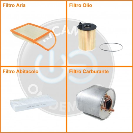 ComposizioneFiltro gasolio, Filtro olio, Filtro abitacolo, Filtro aria