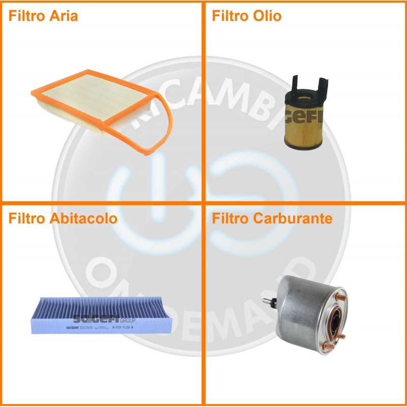 ComposizioneFiltro abitacolo ai carboni attivi, Filtro aria, Filtro gasolio, Filtro olio