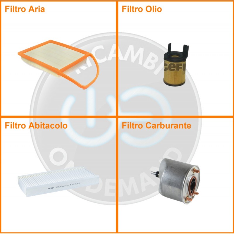 ComposizioneFiltro gasolio, Filtro olio, Filtro abitacolo, Filtro aria