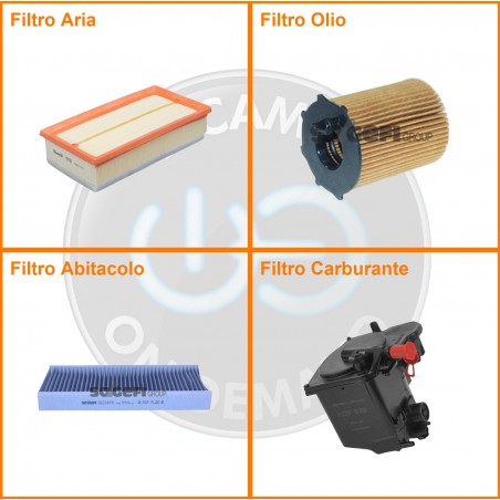 ComposizioneFiltro gasolio, Filtro olio, Filtro abitacolo ai carboni attivi, Filtro aria