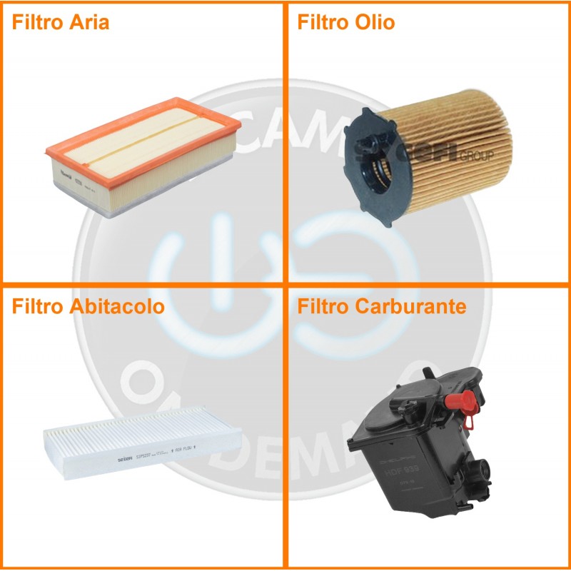 ComposizioneFiltro gasolio, Filtro olio, Filtro abitacolo, Filtro aria