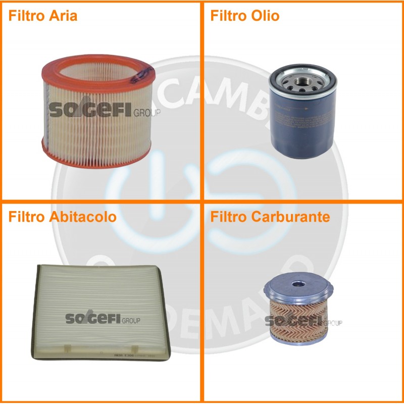 ComposizioneFiltro abitacolo, Filtro aria, Filtro gasolio, Filtro olio