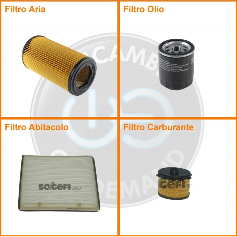 ComposizioneFiltro abitacolo, Filtro aria, Filtro gasolio, Filtro olio