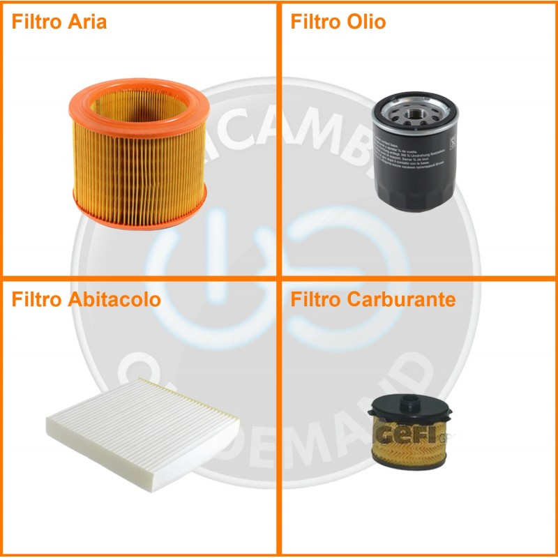 ComposizioneFiltro gasolio, Filtro olio, Filtro abitacolo, Filtro aria