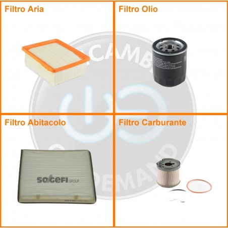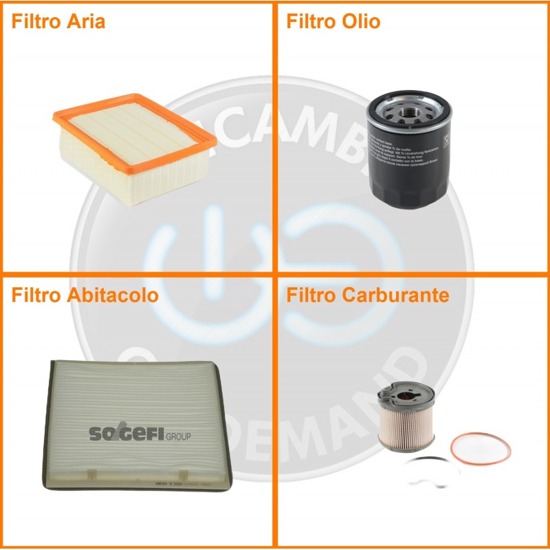 ComposizioneFiltro abitacolo, Filtro aria, Filtro gasolio, Filtro olio