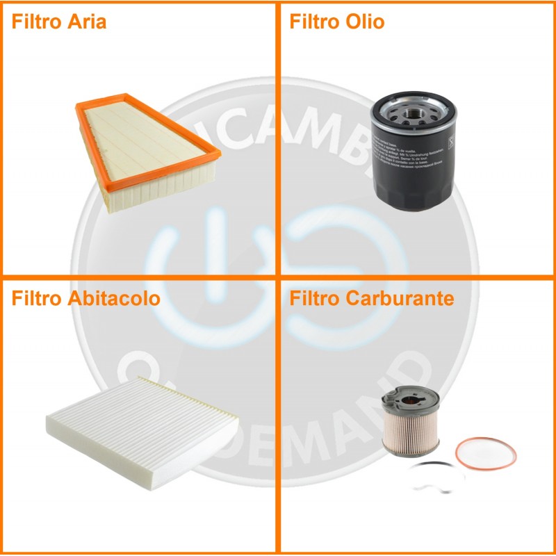 ComposizioneFiltro abitacolo, Filtro aria, Filtro gasolio, Filtro olio