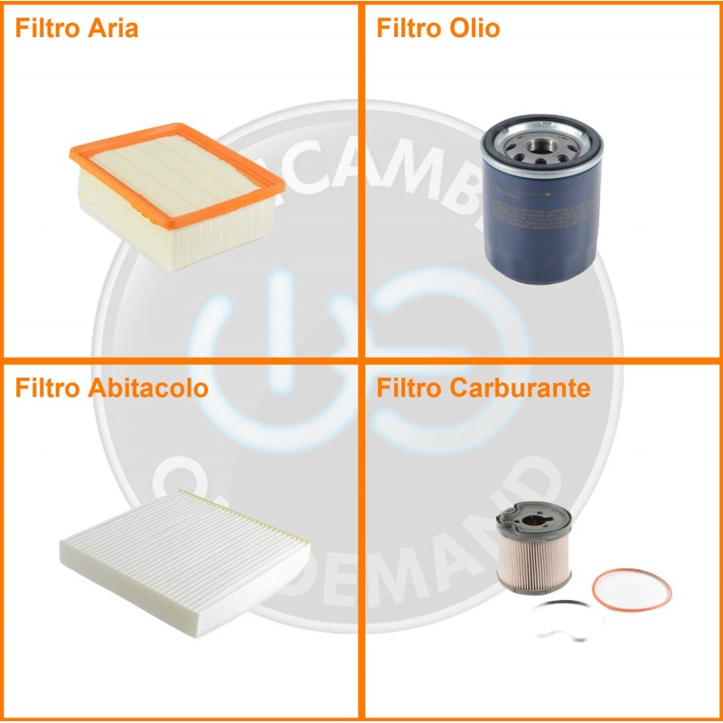 ComposizioneFiltro abitacolo, Filtro aria, Filtro gasolio, Filtro olio