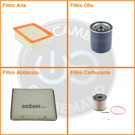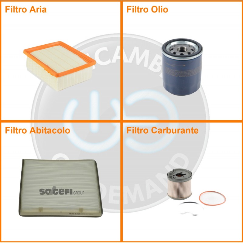 ComposizioneFiltro gasolio, Filtro olio, Filtro abitacolo, Filtro aria