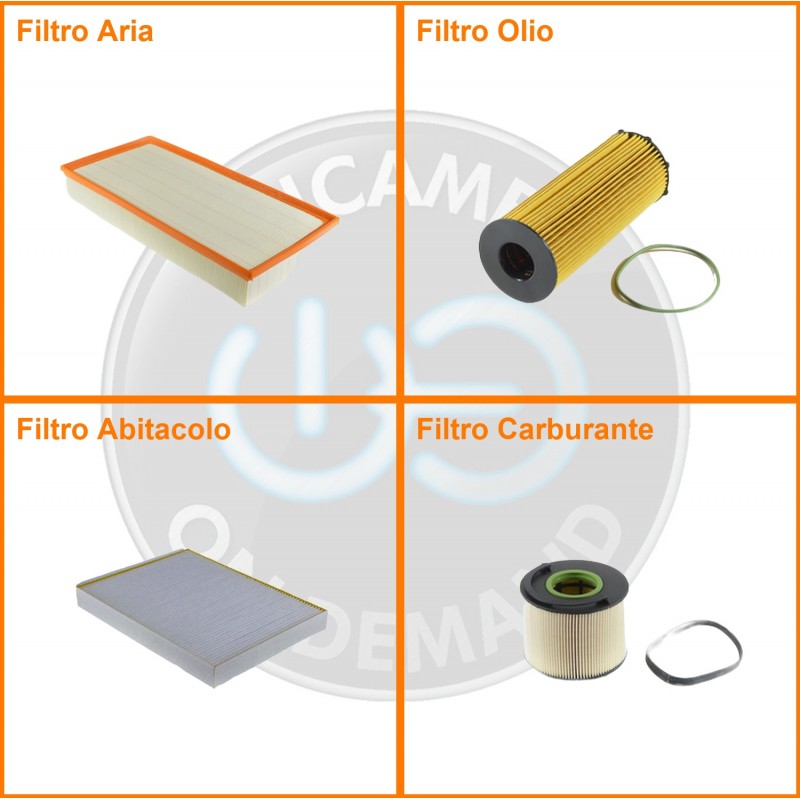 ComposizioneFiltro abitacolo, Filtro aria, Filtro gasolio, Filtro olio