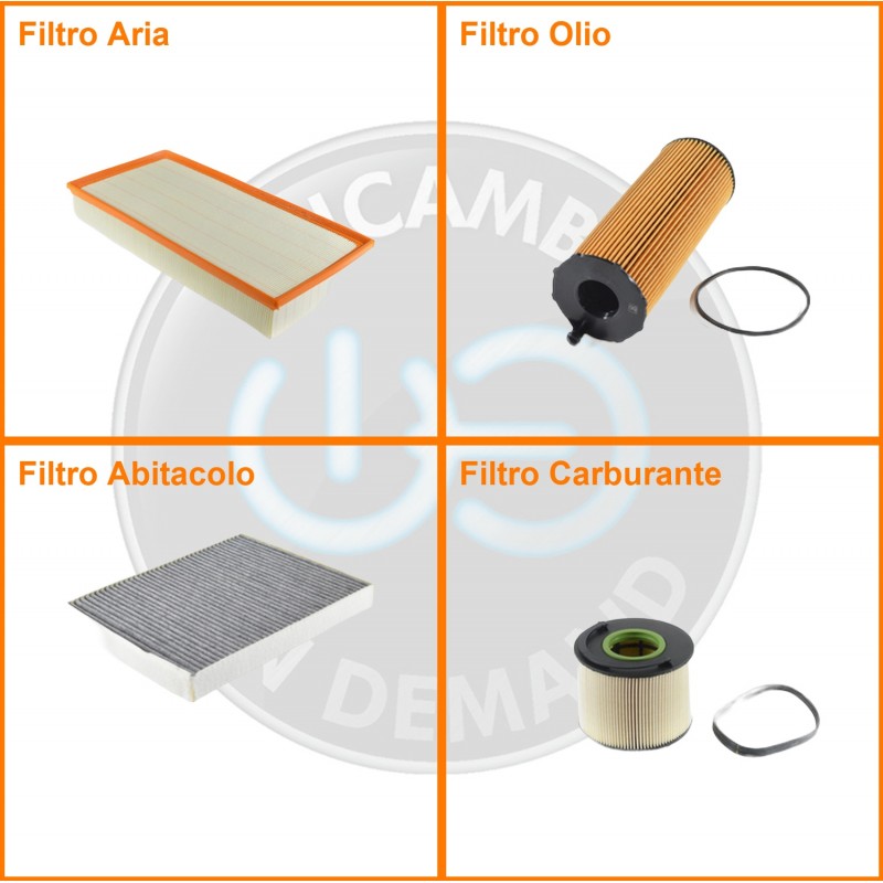 ComposizioneFiltro gasolio, Filtro olio, Filtro abitacolo ai carboni attivi, Filtro aria