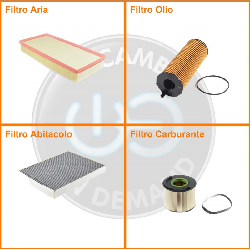 ComposizioneFiltro abitacolo ai carboni attivi, Filtro aria, Filtro gasolio, Filtro olio