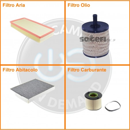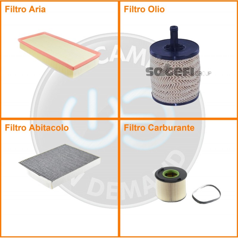 ComposizioneFiltro gasolio, Filtro olio, Filtro abitacolo ai carboni attivi, Filtro aria