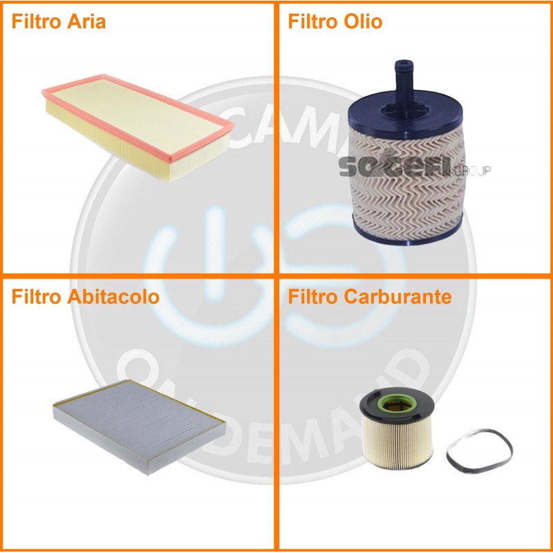 ComposizioneFiltro gasolio, Filtro olio, Filtro abitacolo, Filtro aria