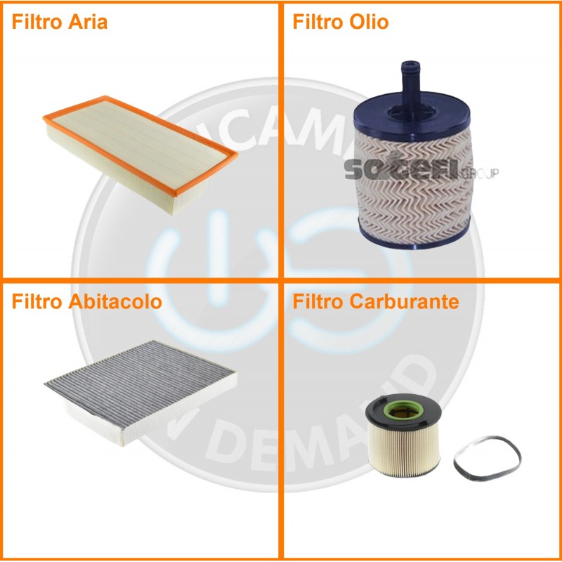 ComposizioneFiltro abitacolo ai carboni attivi, Filtro aria, Filtro gasolio, Filtro olio