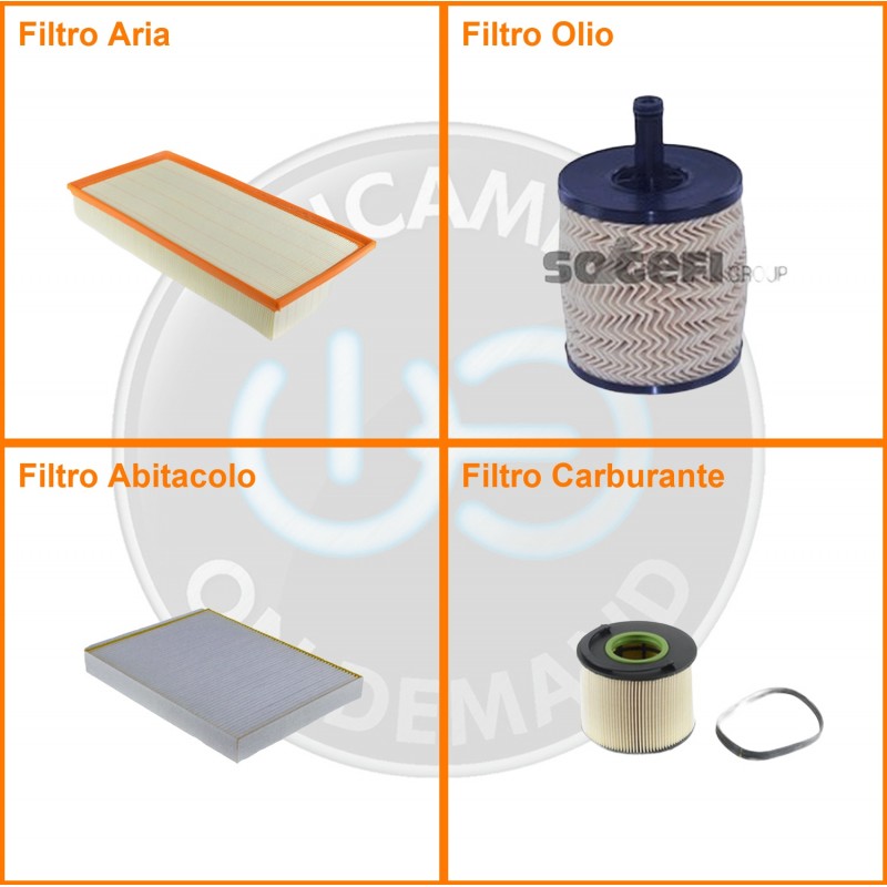ComposizioneFiltro abitacolo, Filtro aria, Filtro gasolio, Filtro olio