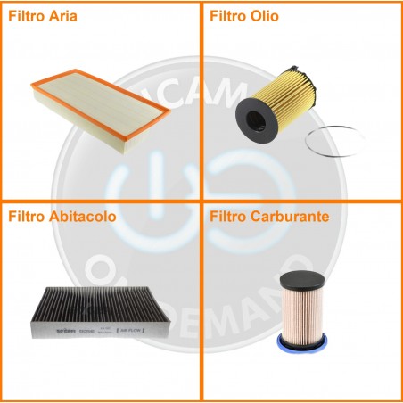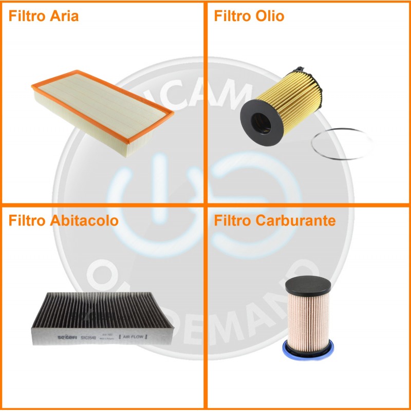 ComposizioneFiltro abitacolo ai carboni attivi, Filtro aria, Filtro gasolio, Filtro olio