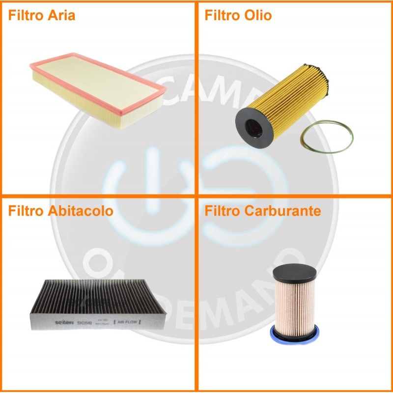 ComposizioneFiltro abitacolo ai carboni attivi, Filtro aria, Filtro gasolio, Filtro olio