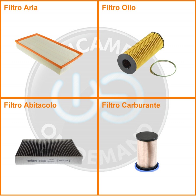 ComposizioneFiltro abitacolo ai carboni attivi, Filtro aria, Filtro gasolio, Filtro olio
