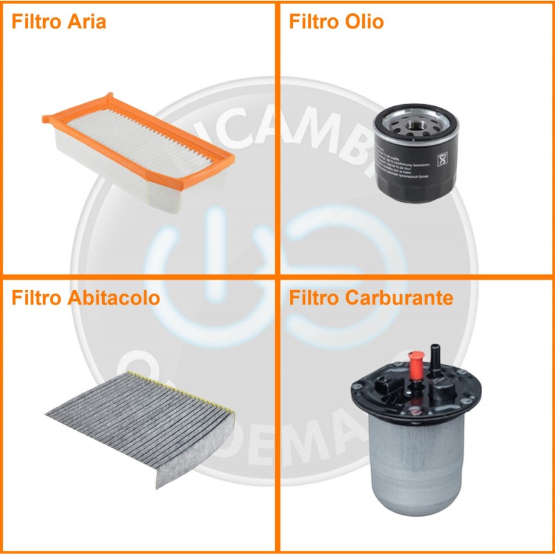 ComposizioneFiltro abitacolo ai carboni attivi, Filtro aria, Filtro gasolio, Filtro olio