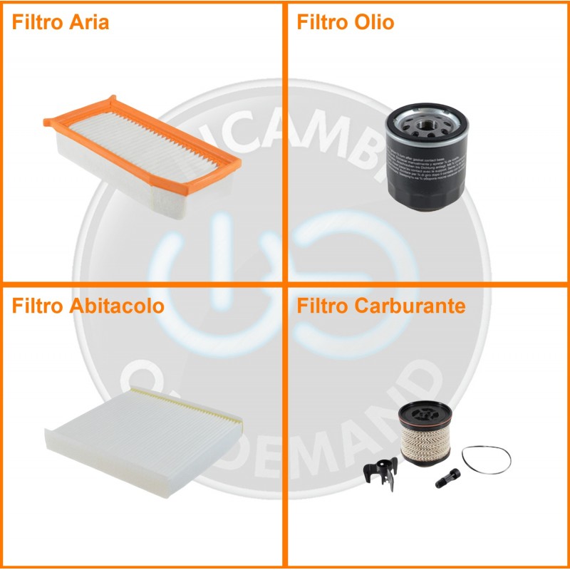 ComposizioneFiltro abitacolo, Filtro aria, Filtro gasolio, Filtro olio