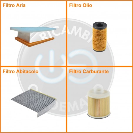 ComposizioneFiltro gasolio, Filtro olio, Filtro abitacolo ai carboni attivi, Filtro aria