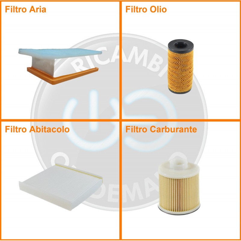 ComposizioneFiltro abitacolo, Filtro aria, Filtro gasolio, Filtro olio