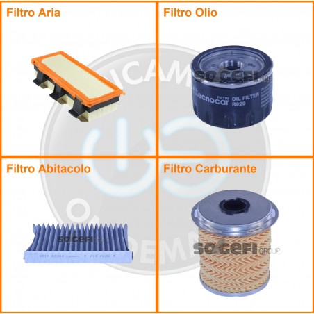 ComposizioneFiltro abitacolo ai carboni attivi, Filtro aria, Filtro gasolio, Filtro olio