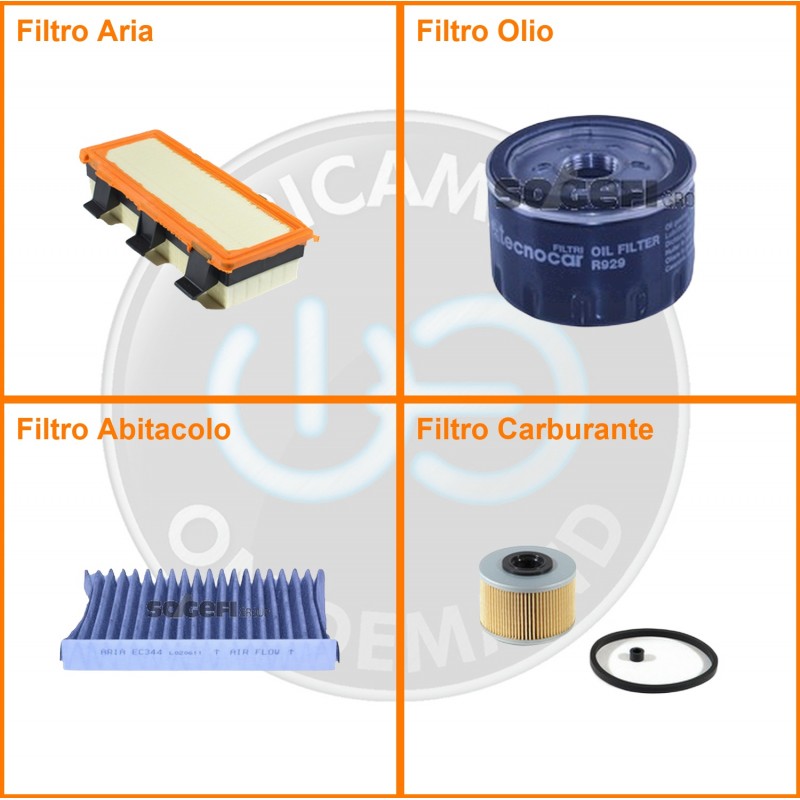 ComposizioneFiltro abitacolo ai carboni attivi, Filtro aria, Filtro gasolio, Filtro olio
