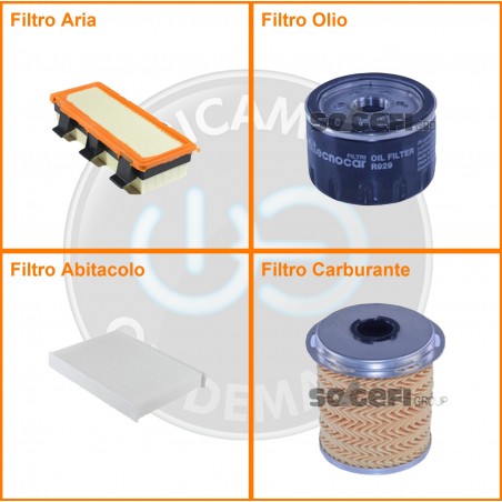 ComposizioneFiltro gasolio, Filtro olio, Filtro abitacolo, Filtro aria