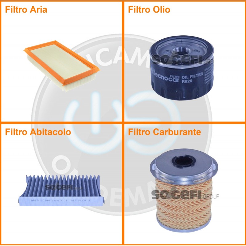 ComposizioneFiltro gasolio, Filtro olio, Filtro abitacolo ai carboni attivi, Filtro aria