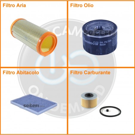 ComposizioneFiltro abitacolo ai carboni attivi, Filtro aria, Filtro gasolio, Filtro olio