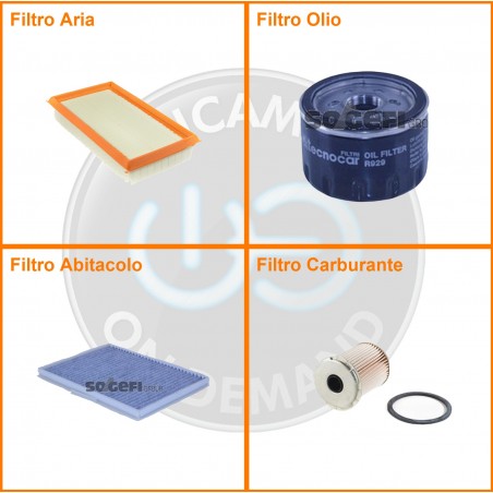 ComposizioneFiltro abitacolo ai carboni attivi, Filtro aria, Filtro gasolio, Filtro olio