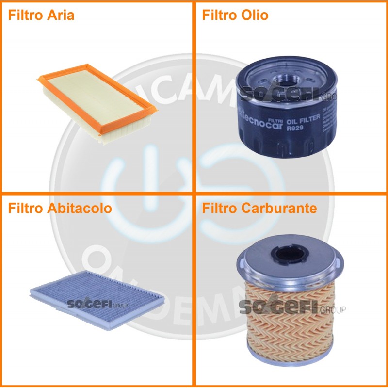 ComposizioneFiltro abitacolo ai carboni attivi, Filtro aria, Filtro gasolio, Filtro olio
