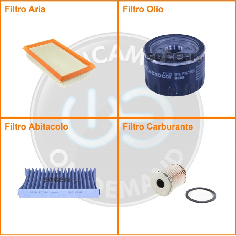 ComposizioneFiltro aria, Filtro gasolio, Filtro olio, Filtro abitacolo ai carboni attivi