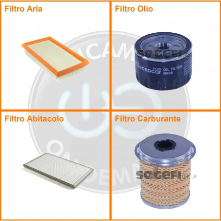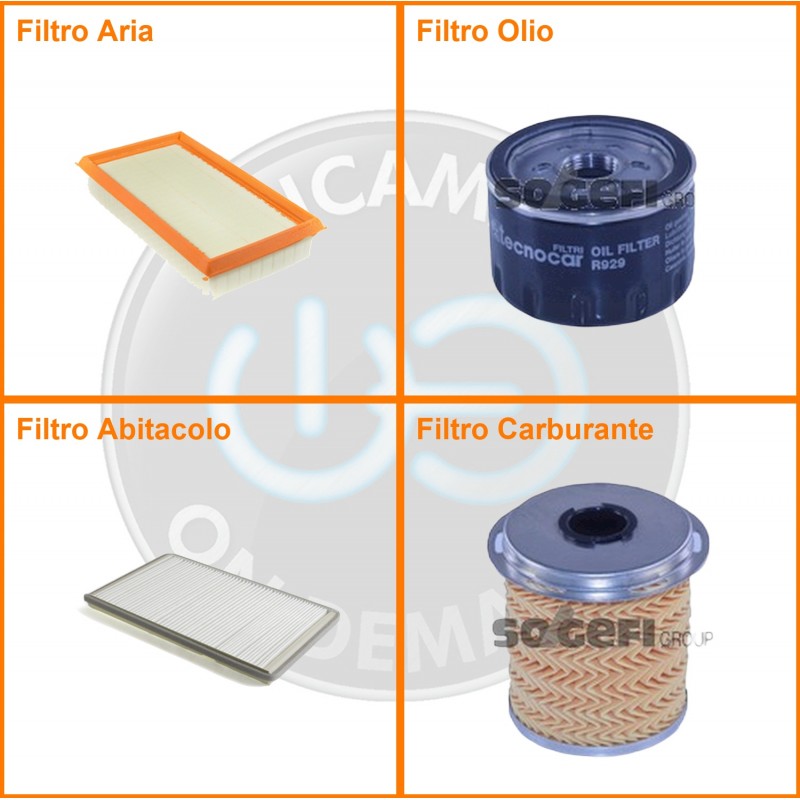 ComposizioneFiltro gasolio, Filtro olio, Filtro abitacolo, Filtro aria