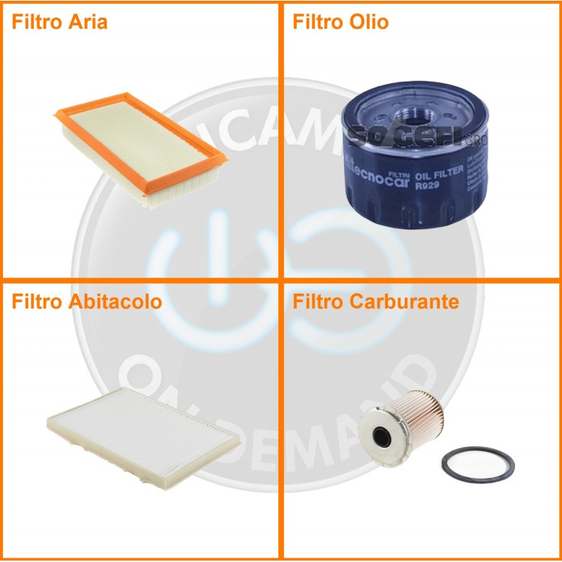 ComposizioneFiltro gasolio, Filtro olio, Filtro abitacolo, Filtro aria