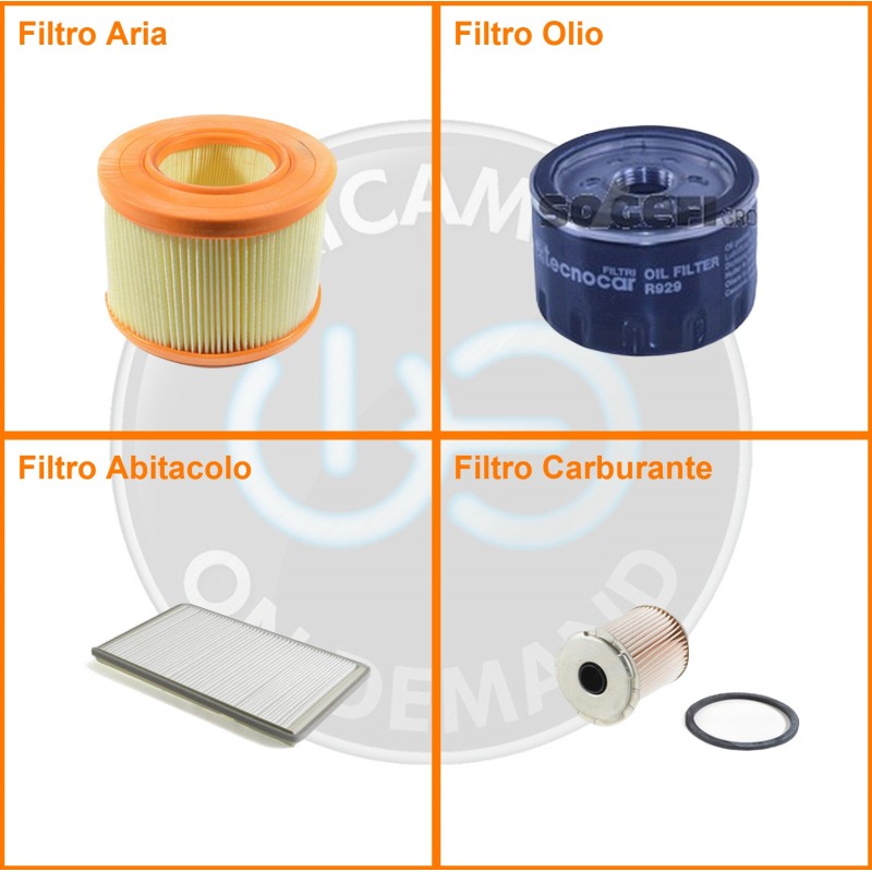ComposizioneFiltro abitacolo, Filtro aria, Filtro gasolio, Filtro olio
