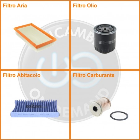 ComposizioneFiltro abitacolo ai carboni attivi, Filtro aria, Filtro gasolio, Filtro olio