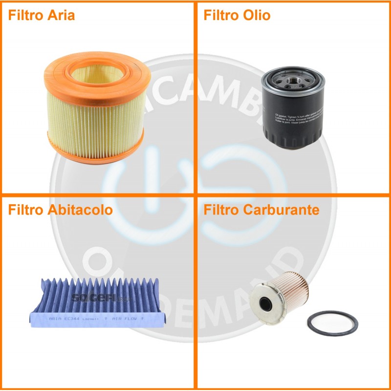 ComposizioneFiltro abitacolo ai carboni attivi, Filtro aria, Filtro gasolio, Filtro olio