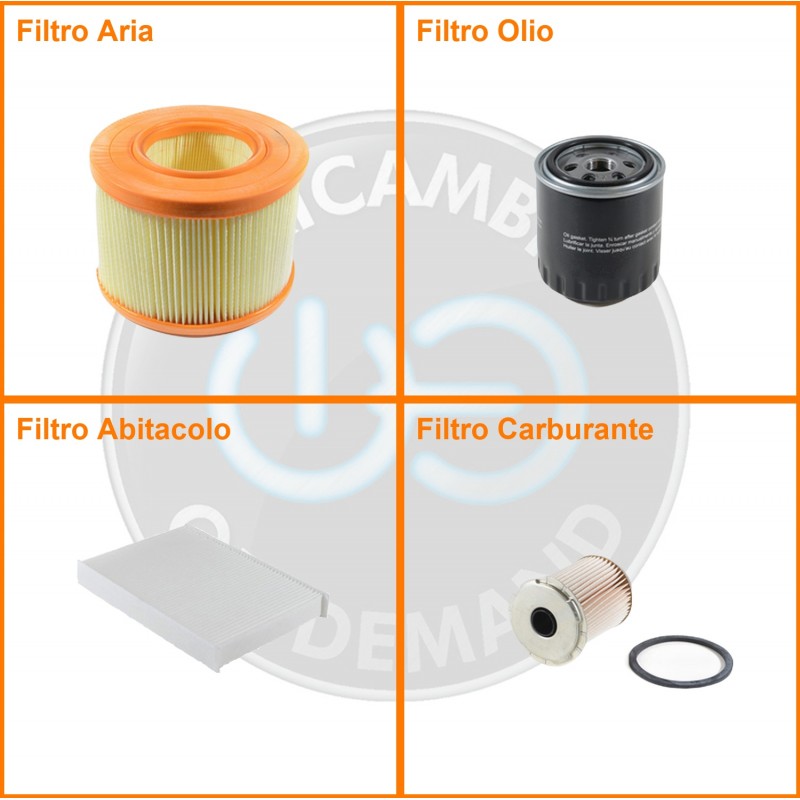 ComposizioneFiltro gasolio, Filtro olio, Filtro abitacolo, Filtro aria